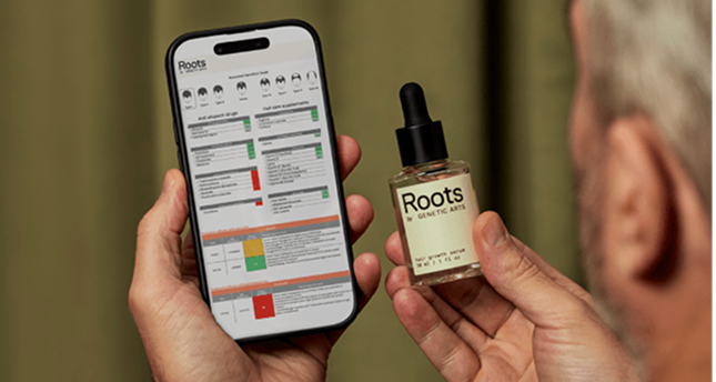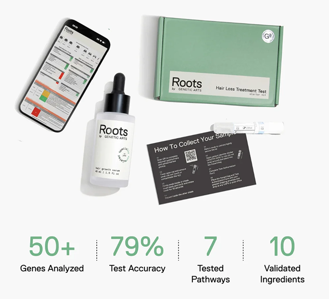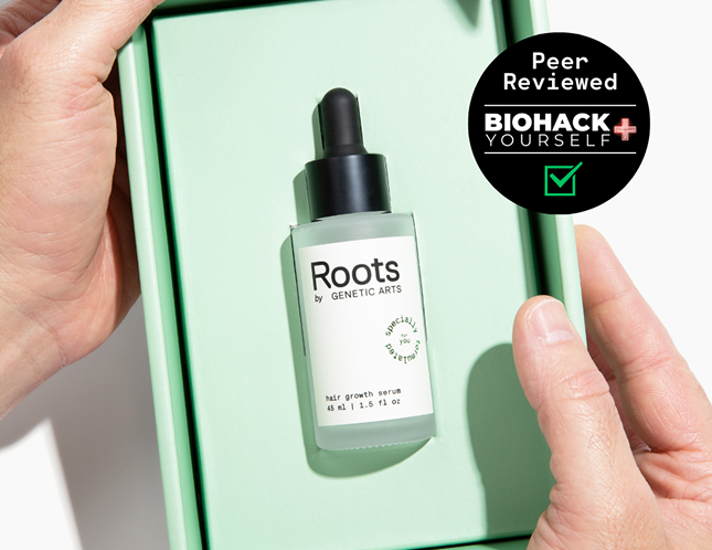That’s how he discovered Roots by Genetic Arts—the only hair growth solution that begins with your DNA and builds a formula around your exact biology.